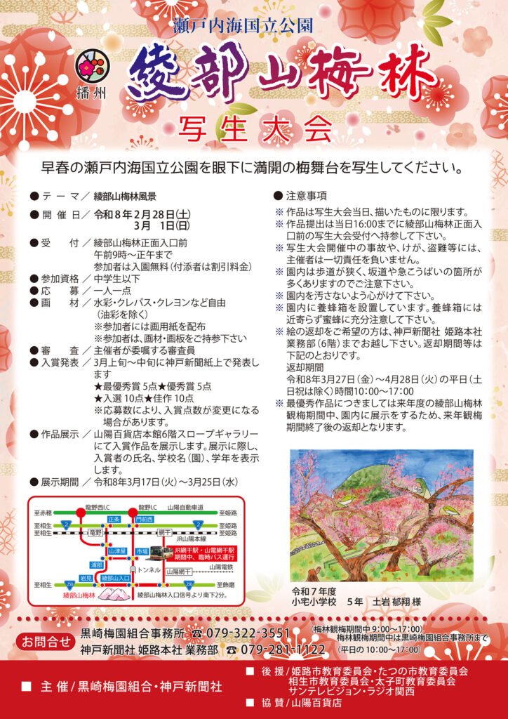 今年の綾部山梅林写生大会の内容は、以下の通りです。